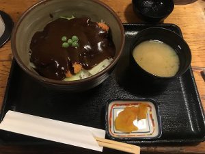 Now, Webmaster introduce you another demiglace-katsudon (or simply called “demi-katsudon”) of Okayama Prefecture. As its name shows, demi-katsudon has demiglace sauce put on a pork cutlet.