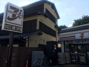 Even the signboard of a convenience store on the street has a quiet color to harmonize with the environment of the approach.