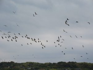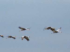 Sometimes we can see a flight of cranes moving to the other feeding grounds.