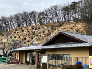 Webmaster visited Yoshimi-hyakuana meaning hundred caves of Yoshimi. These caves are collective tombs in the late 6th to 7th Century designated as Nationally Designated Historical Site.