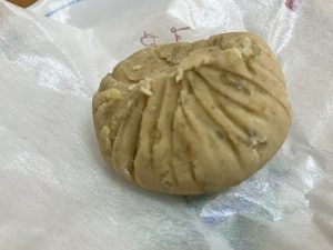 Kuri-kinton is made of fresh chestnuts mashed and boiled with sugar, then shaped. The final product resembles to the chestnut itself.