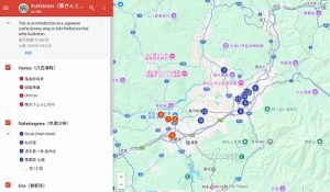 This google map shows Japanese confectionery shops in the region that sell Kurikinton.