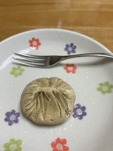 Kuri-kinton is made of fresh chestnuts mashed and boiled with sugar, then shaped. The final product resembles to the chestnut itself.